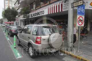 MÉXICO, D.F.,10DICIEMBRE2012.- A pesar de la señalización donde prohíben estacionarse, automóviles bloquean el carril confinado para bicicletas sobre la avenida Chapultepec y Lieja en la colonia Roma. FOTO: SAÚL LÓPEZ /CUARTOSCURO.COM