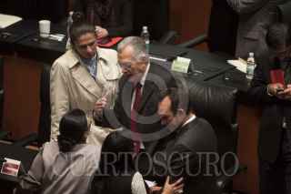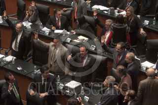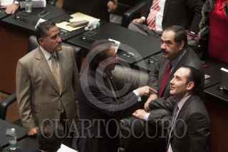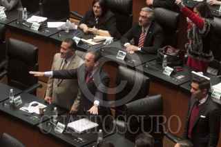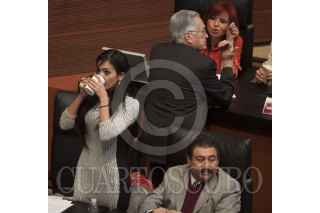 MÉXICO, D.F., 11DICIEMBRE2012.- La senadora Iris Vianey Mendoza, durante la sesión en la que se aprobó la Ley de Administración Pública promovida por el Jefe del Ejecutivo Enrique Peña Nieto. En la imagen se observa a Manuel Barttlet, Layda Sansores e Isidro Pedraza. FOTO: MOISÉS PABLO /CUARTOSCURO.COM