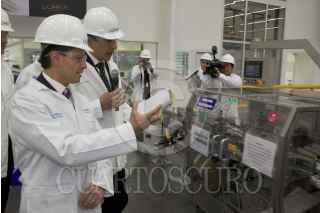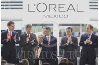 VILLA DE REYES, SAN LUIS POTOSI, 11DICIEMBRE2012.- Enrique Peña Nieto, presidente de Mexico acompañado de Fernando Toranzo, gobernador, San Luis Potosí, y empresarios de la marca cosmética; inauguraron la planta L´Oréal. FOTO: PRESIDENCIA/CUARTOSCURO.COM