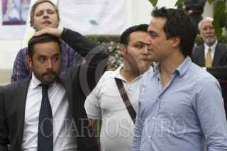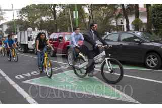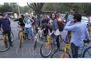 MÉXICO, D.F., 11DICIEMBRE2012.- Víctor Hugo Romo, jefe delegacional de Miguel Hidalgo, acompañado de Alejandro Encinas Najera, hijo de Alejando Encinas, senador del PRD, encabezo la bienvenida a las juventudes Internacionales de la Izquierda en parque Lincon y que posteriormente realizaron un recorrido en bicicleta que concluyo en la Rotonda de los Hombre Ilustres en el Panteón Dolores. FOTO: GUILLERMO PEREA /CUARTOSCURO.COM