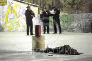 MÉXICO, D.F., 12DICIEMBRE2012.- Un hombre de aproximadamente 30 años, perdió la vida al estallarle una bomba de fuegos pirotécnicos en el rostro. El sujeto, lanzaba estas bombas, en compañía de tres personas más que resultaron lesionados y trasladados a hospitales cercanos. Los hechos ocurrieron en el interior de una cancha de fútbol rápido ubicada en la calle Paseo del Chacabuco y Paseo de La Patria en la colonia Ampliación La Cebada en Álvaro Obregón. Fueron aseguradas dos bombas de este tipo y el mortero con el que eran lanzadas el cual quedo a un costado del difunto. FOTO: LUIS CARBAYO /CUARTOSCURO.COM