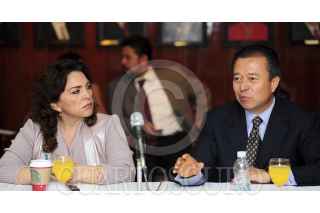 MÉXICO, D.F., 12DICIEMBRE2012.- César Camacho Quiroz, Presidente Nacional del PRI e Ivonne Ortega Pacheco, secretaria general de este partido, durante la reunión con dirigentes con los comités directivos estatales de este partido. FOTO: CUARTOSCURO.COM