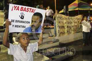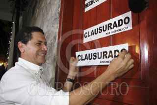 CANCÚN, QUINTANA ROO, 12DICIEMBRE2012.- El ex Alcalde de Cancún, Gregorio Sánchez Mártínez, detenido en 2010 por presuntos vínculos con la delincuencia organizada y con un expediente abierto en la Procuraduría General de Justicia de Quintana Roo por el supuesto desvío de recursos públicos, se presentó la tarde de este miércoles en la Plaza de la Reforma y clausuró de forma simbólica el Palacio Municipal de Cancún en medio de reclamos para que el actual Alcalde, Julián Ricalde Magaña. Acompañado por decenas de seguidores que gritaron consignas y enarbolaron mantas contra Ricalde, en lo que se pretendió fuera un “Tribunal del Pueblo”, Sánchez Martínez rechazó haber robado dinero del Ayuntamiento. FOTO: CSPHOTO /CUARTOSCURO.COM