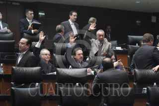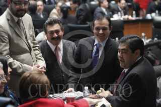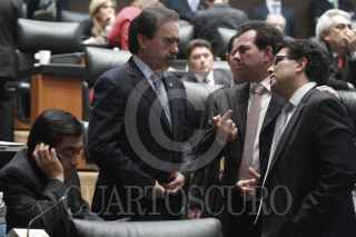 MÉXICO, D.F., 13DICIEMBRE2012.- Los senadores Miguel Barbosa, Emilio Gamboa Patrón, José Francisco Yunes y Armando Ríos Peter durante la sesión del senado donde se esta discutiendo el presupuesto 2013. FOTO: ESPECIAL /CUARTOSCURO.COM