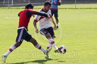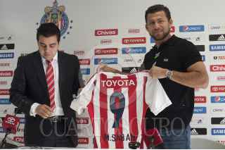 ZAPOPAN, JALISCO, 17DICIEMBRE2012.- Esta mañana en las instalaciones de Verde Valle el director deportivo del Club Chivas Marcelo Michel Leaño, presento como tercer refuerzo al delantero Mexicano proveniente del Club Morelia, Miguel Sabah y en donde el atacante entreno al parejo de los demás jugadores del plantel. FOTO: FERNANDO CARRANZA GARCIA /CUARTOSCURO.COM