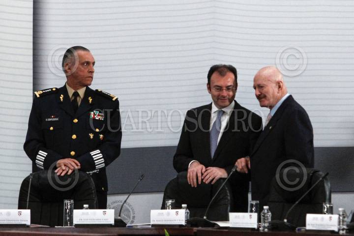 MÉXICO, D.F., 17DICIEMBRE2012.- El almirante Vidal Francisco Soberón Sanz, Secretario de Marina junto a Miguel Ángel Osorio Chong, Secretario de Gobernación y el General Salvador Cienfuegos Zepeda, Secretario de la Defensa Nacional durante la II Sesión Extraordinaria del Consejo Nacional de Seguridad Pública que tuvo lugar en Palacio Nacional. FOTO: ENRIQUE ORDÓÑEZ /CUARTOSCURO.COM