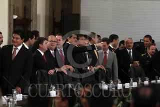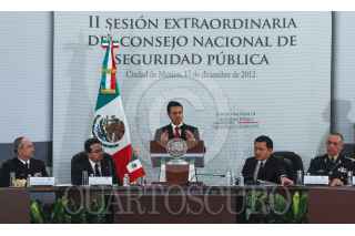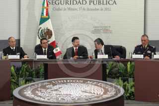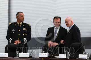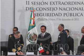 MÉXICO, D.F., 17DICIEMBRE2012.- El almirante Vidal Francisco Soberón Sanz, Secretario de Marina junto a Miguel Ángel Osorio Chong, Secretario de Gobernación y el General Salvador Cienfuegos Zepeda, Secretario de la Defensa Nacional durante la II Sesión Extraordinaria del Consejo Nacional de Seguridad Pública que tuvo lugar en Palacio Nacional. FOTO: ENRIQUE ORDÓÑEZ /CUARTOSCURO.COM