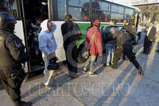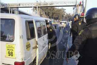 MÉXICO, D.F., 17DICIEMBRE2012.- Policías capitalinos, realizaron el operativo "Pasajero Seguro" en la entrada al Distrito Federal por la autopista México-Puebla en la colonia Santa Martha Acatitla donde vigilan principalmente a los pasajeros que usan el transporte publico ya que esta zona es de las que se tiene un mayor indice de delincuencia. FOTO: LUIS CARBAYO /CUARTOSCURO.COM
