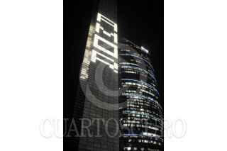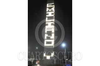 MÉXICO, D.F., 19DICIEMBRE2012.- La estela de luz, fue hackeada por lo que estuvieron enviando mensajes de amor a través del juego de luces. El lugar fue resguardado por elementos policíacos del sector Ángel. FOTO: LUIS CARBAYO /CUARTOSCURO.COM