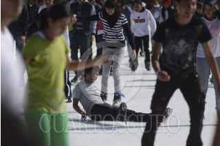 MÉXICO, D.F., 19DICIEMBRE2012.- Niños, jóvenes y familias completas disfrutan de la pista de hielo y los juegos navideños instalados en la plancha del zócalo como parte de la temporada navideña. FOTO: ADOLFO VLADIMIR /CUARTOSCURO.COM