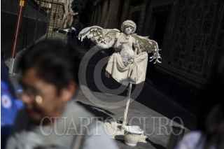 MÉXICO, D.F., 19DICIEMBRE2012.- Una artista urbana realiza ilusión en la Calle Madero. FOTO: ADOLFO VLADIMIR /CUARTOSCURO.COM