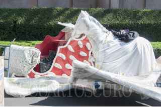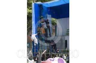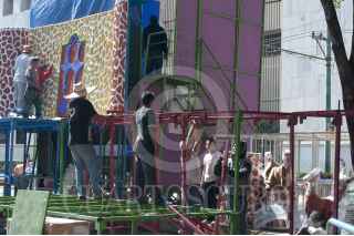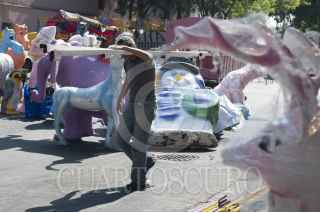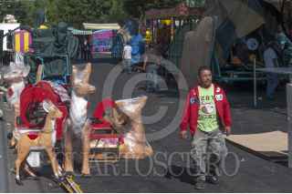 MÉXICO, D.F., 19DICIEMBRE2012.- Comerciantes de la tradicional Romería Navideña comenzaron a instalar sus puestos sobre la calle Valerio Trujano, a un costado de la Alameda Central, cuando hoy se esperaba que fuera inaugurada por la dirigente social, Diana Sánchez Barrios. Los comerciantes informaron que empezaran a trabajar a partir de mañana, esperando a las familias que se quieran tomar la foto con Santa Claus y los Reyes Magos. FOTO: DIEGO SIMÓN SÁNCHEZ /CUARTOSCURO.COM