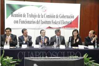 MÉXICO, D.F., 19DICIEMBRE2012.- Los senadores Miguel Barbosa, Emilio Gamboa, Ernesto Cordero, Cristina Díaz, acompañaron a los consejeros del IFE Leonardo Valdés Zurita, Marco Antonio Baños, durante la reunión de trabajo de la Comisión de Gobernación con funcionarios del IFE. FOTO: CUARTOSCURO.COM