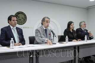 MÉXICO, D.F., 19DICIEMBRE2012.- Pablo Escudero Morales, Raúl Cervantes Andrade, María Cristina Díaz Salazar y Alejandro Encinas Rodríguez, ofrecieron una conferencia de prensa en la Cámara Alta. FOTO: CUARTOSCURO.COM