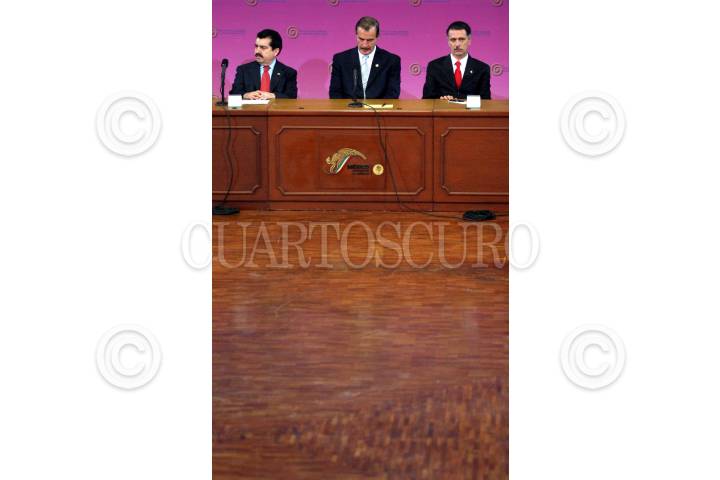MEXICO, D.F., 23JUNIO2005.- Vicente Fox Quesada, presidente de la República (centro), Ramón Martín Huerta, Secretario de Seguridad Pública y Carlos María Abascal, secretario de Gobernación, durante la toma de Protesta del Consejo de Participación Ciudadana, en la residencia oficial de los Pinos. FOTO: Moisés Pablo/CUARTOSCURO.COM