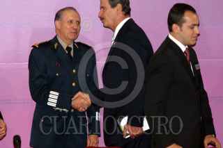 MEXICO, D.F., 23JUNIO2005.- Vicente Fox Quesada, presidente de la República y Gerardo Clemente Vega, secretario de la Defensa, durante la toma de Protesta del Consejo de Participación Ciudadana, en la residencia oficial de los Pinos. FOTO: Moisés Pablo/CUARTOSCURO.COM