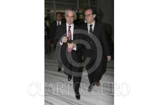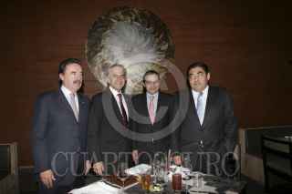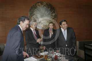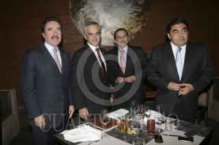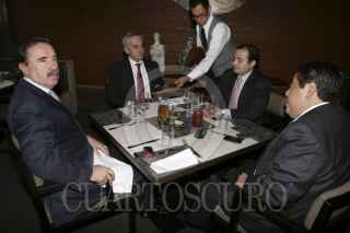 MÉXICO, D.F., 20DICIEMBRE2012.- Los coordinadores en el Senado de las bancadas del PRI, Emilio Gamboa Patrón, del PAN, Ernesto Cordero, y Luis Miguel Barbosa, del PRD; durante la comida con el Jefe de Gobierno, Mguel Ángel Mancera, en un hotel ubicado en paseo de la Reforma. La reunión se realizó para abordar la reforma política de la capital. FOTO: JUAN PABLO ZAMORA /CUARTOSCURO.COM