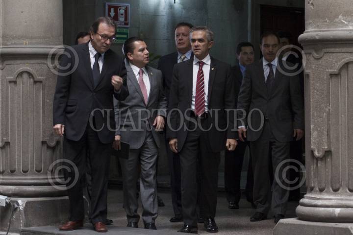 MÉXICO, D.F., 20DICIEMBRE2012.- Manuel Granados, presidente de la comisión de gobierno de la ALDF, Miguel Ángel Mancera, Jefe de Gobierno, David Korenfeld Federman, director del Conagua, anunciaron en conferencia de prensa la creación de la tercera línea de seguridad y operación para el Sistema Cutzamala, así como la reconstrucción del canal Tláhuac-Mixquic. FOTO: MOISÉS PABLO /CUARTOSCURO.COM