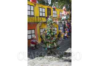 MÉXICO D.F., 20DICIEMBRE2012.- En el centro de Coyoacán, en el marco de las celebraciones decembrinas, se instalo una maqueta del callejón del Cuajo, donde vive la familia Burrón, celebres historieta del caricaturista Gabriel Vargas, ideada a finales de los 40´s. En la maqueta se aprecia una tradicional posada donde participan "Regino Burrón" "Borola Tacuche de Burrón" "Foforito cantaranas" y más. FOTO: FRANCISCO RODRÍGUEZ /CUARTOSCURO.COM