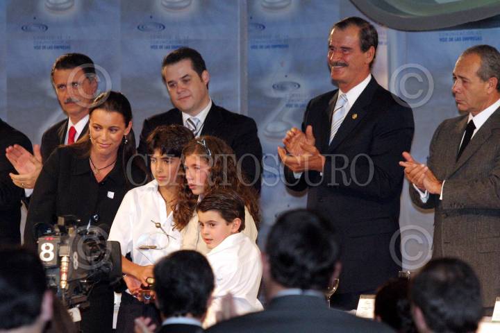 MEXICO, D.F., 23JUNIO2005.- Vicente Fox Quesada, presidente de la República, entregó los premios "Principios a los Mejores Contenidos de Televisión del Consejo de la Comunicación, en un hotel de la capital. FOTO: Moisés Pablo/CUARTOSCURO.COM