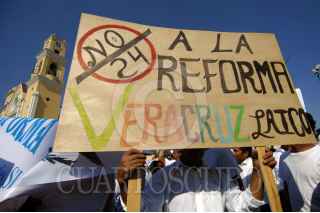 XALAPA, VERACRUZ., 20DICIEMBRE2012.- Esta mañana integrantes de la Asociación Civil "Veracruz Laico", marcharon desde el parque de los berros hasta palacio de gobierno para pedir la intervención del gobernador Javier Duarte de Ochoa ante el congreso del estado ante la probable aprobación de la Reforma al artículo 24 Constitucional. FOTO: TONA NAVARRO/CUARTOSCURO.COM