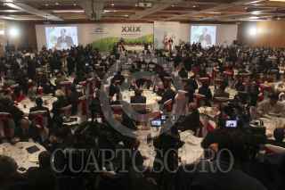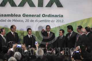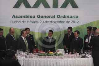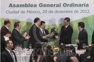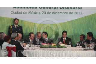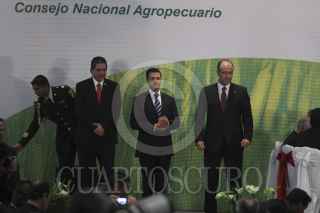 MÉXICO, D.F., 20DICIEMBRE2012.- Enrique Peña Nieto, presidente de México, acudió a la asamblea general y la toma de protesta del Consejo Nacional Agropecuario, en la mesa principal lo acompañaron los secretarios Enrique Martínez y Martínez e Ildelfonso Guajardo, los gobernadores, Cesar Horacio Duarte y Mario López Valdes así como el presidente y ex presidente del Consejo Nacional Agropecuario, Juan Carlos Cortes García y Benjamín Grayeb Ruíz. FOTO: SAÚL LÓPEZ /CUARTOSCURO.COM