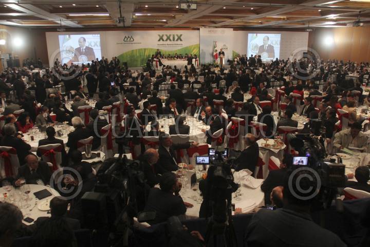 MÉXICO, D.F., 20DICIEMBRE2012.- Enrique Peña Nieto, presidente de México, acudió a la asamblea general y la toma de protesta del Consejo Nacional Agropecuario, en la mesa principal lo acompañaron los secretarios Enrique Martínez y Martínez e Ildelfonso Guajardo, los gobernadores, Cesar Horacio Duarte y Mario López Valdes así como el presidente y ex presidente del Consejo Nacional Agropecuario, Juan Carlos Cortes García y Benjamín Grayeb Ruíz. FOTO: SAÚL LÓPEZ /CUARTOSCURO.COM