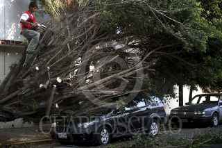 VERACRUZ, VERACRUZ., 20DICIEMBRE2012.- Diversos estragos causaron los fuertes vientos del frente frío numero 16 que azotaron la zona conurbada la tarde de este jueves, por lo que autoridades de Protección Civil y corporaciones de rescate se movilizaron en distintos puntos del puerto, para atender las afectaciones entre las que como la caída de árboles, palmeras y postes de energía eléctrica. Algunas personas salieron a observar el fenómeno. FOTO: FÉLIX MÁRQUEZ/CUARTOSCURO.COM
