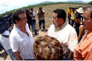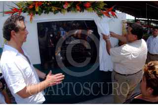 TACOTALPA, TABASCO 23JUNIO2005.- El empresario tabasqueño y ex banquero; Carlos Cabal Peniche junto al gobernador Manuel Andrade Díaz recorrieron la planta procesadora bananera denominada "San Carlos" en la cual se han invertido 10 millones de pesos y dara empleo a cientos de lugareños. FOTO: Marco Polo Guzmàn/CUARTOSCURO.COM
