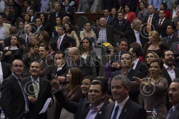 MÉXICO, D.F., 20DICIEMBRE2012.- Diputados festejaron la aprobación del Paquete Económico Fiscal. FOTO: ENRIQUE ORDÓÑEZ /CUARTOSCURO.COM