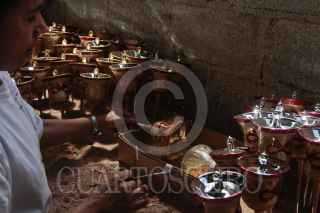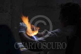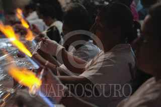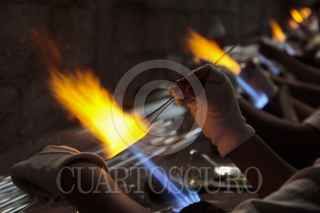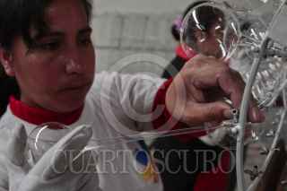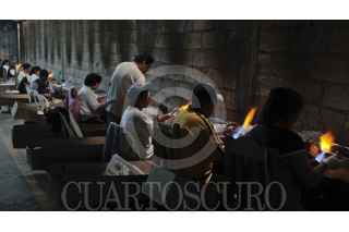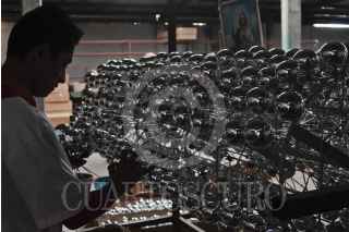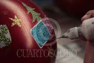 CHIGNAHUAPAN, PUEBLA, 22DICIEMBRE2012.- La producción de esferas navideñas a través del vidrio soplado, es una de las principales actividades económicas de este pueblo mágico el cual de manera artesanal las crea en sus más de 200 talleres y que es tanta la importancia que más del 50% de sus habitantes se dedican a su elaboración o venta para exportarlas en todo México y Europa, principalmente. Su elaboración consta de varias etapas que son cuidadosamente tratadas por los artesanos para que el producto salga con la mejor calidad para que la gente en esta temporada navideña pueda adornar su trabajo y hogar. En los últimos años este pueblo ha reportado bajas en la venta de este producto pues dicen que la importación de esfera China esta poniendo en riesgo a toda la gente que vive de ella. FOTO: ENRIQUE ORDÓÑEZ /CUARTOSCURO.COM