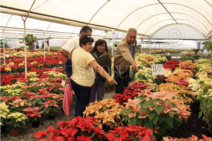 ATLIXCO, PUEBLA, 21DICIEMBRE2012.- Venta de flor de nochebuena en vivieros de la región de Atlixco, Puebla; misma que este año alcanzó una producción estimada de dos millones de plantas que coloca al estado de Puebla entre los cinco mayores productores del país y el principal surtidor para la región sur. FOTO: HILDA RÍOS /CUARTOSCURO.COM