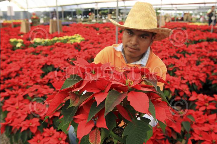 ATLIXCO, PUEBLA, 21DICIEMBRE2012.- Venta de flor de nochebuena en vivieros de la región de Atlixco, Puebla; misma que este año alcanzó una producción estimada de dos millones de plantas que coloca al estado de Puebla entre los cinco mayores productores del país y el principal surtidor para la región sur. FOTO: HILDA RÍOS /CUARTOSCURO.COM