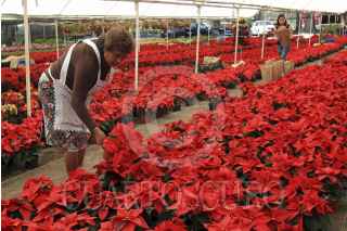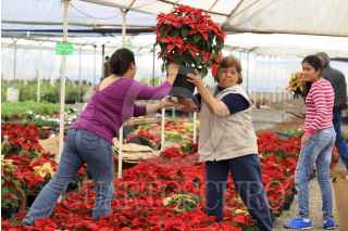 ATLIXCO, PUEBLA, 21DICIEMBRE2012.- Venta de flor de nochebuena en vivieros de la región de Atlixco, Puebla; misma que este año alcanzó una producción estimada de dos millones de plantas que coloca al estado de Puebla entre los cinco mayores productores del país y el principal surtidor para la región sur. FOTO: HILDA RÍOS /CUARTOSCURO.COM