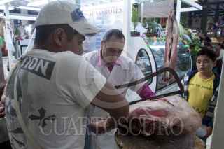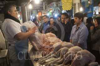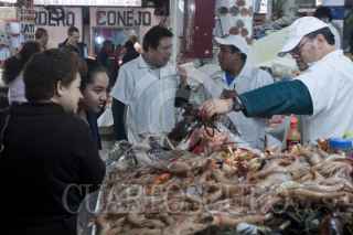 MÉXICO, D.F., 21DICIEMBRE2012.- Cientos de personas acuden al mercado de San Juan en el Centro Histórico a realizar sus compras para la cena de Navidad; Los comerciantes ofrecen para esta fecha los tradicionales pavos, lechones, cabritos, cordero y distintas especies de pescados y mariscos. FOTO: RODOLFO ANGULO /CUARTOSCURO.COM