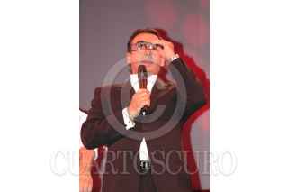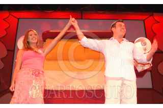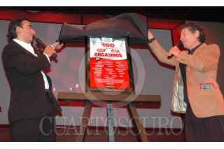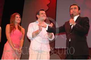 MEXICO, D.F. 24JUNIO2005.- El condutor del programa de televisión "Otro Rollo" Adal Ramones y Dan Israely develaron la placa conmemorativa de las 100 representaciones de la puesta en escena "Orgasmos la comedia". FOTO: Iván Stephens/CUARTOSCURO.COM