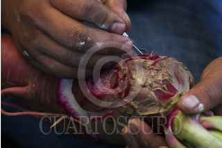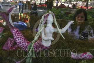 OAXACA, OAXACA, 23DICIEMBRE2012.- Decenas de artesanos colocaron sus esculturas a base de rábanos mismas que son para celebrar la tradicional "Noche de Rábanos" en su 115 aniversario donde pobladores y turistas acuden a deleitarse con la exposición. FOTO: ARTURO PÉREZ ALFONSO /CUARTOSCURO.COM