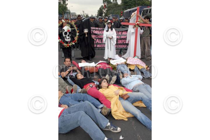 MEXICO, D.F., 24JUNIO2005.- Mujeres pertenecientes a varias organizaciones civiles, se manifestaron en la entrada de la Residencia Oficial de los Pinos en donde elementos del Estado Mayor les impidieron el paso, el objetivo era hacerle llegar una carta al primer mandatario para mostrarle su inconformidad en los casos de las asesinadas de Ciudad Juárez y del resto del país. FOTO: Moisés Pablo/CUARTOSCURO.COM