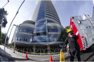 MÉXICO, D.F., 26DICIEMBRE2012.- Un ventanal del 4to piso del hotel St. Regis en Paseo de la Reforma, se desplomó sobre la acera de esta gran avenida. Al lugar arribaron elementos del H. Cuerpo de Bomberos así como de Protección Civil. En el lugar no hubo lesionados y se desconoce el motivo del desplome de la ventana. FOTO: EMILIANO BUSTILLOS / CUARTOSCURO.COM