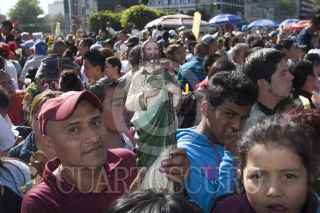 MÉXICO, D.F., 28DICIEMBRE2012.- Como cada 28 de cada mes, miles de fieles al Santo San Judas Tadeo, acuden a la Iglesia de San Hipolito, para escuchar misa o bendecir las estatuillas del santo de las causa difícles. FOTO: FRANCISCO RODRÍGUEZ /CUARTOSCURO.COM