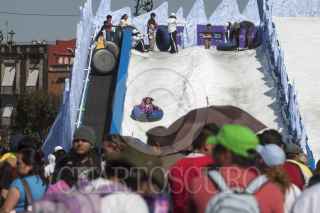 MÉXICO, D.F., 28DICIMBRE2012.- Decenas de niños disfrutan de las atracciones navideñas en el zócalo, como la rampa de hielo en donde pueden practicar o aprender, por unos minutos, a esquiar en nieve, aunque es larga la espera bien vale la pena, a decir de los rostros de los pequeños que se divierten de lo lindo. FOTO: MOISÉS PABLO /CUARTOSCURO.COM