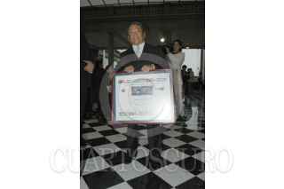 MEXICO, D.F. 24JUNIO2005.- Al escultor Sebastián, el guionista Guillermo Arriaga, la coreógrafa Guillermina Bravo, el compositor Armando Manzanero y el novelista Fernando del Paso les fue reconocida su trayectora en las diversas áreas de la cultura que desempeñan una labor destacada por el Parlamento cultural del MERCOSUR (PARCUM) en el alcázar del castillo de Chapultepec. FOTO: Iván Stephens/CUARTOSCURO.COM