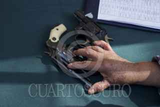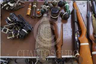 MÉXICO, D.F., 29DICIEMBRE2012.- En un día más del programa "Desarme Voluntario" en la Delegación Iztapalapa, al cierre del día fueron recibidas en total 146 armas, de ellas: 19 armas largas, 112 armas cortas y 15 granadas, cartuchos y municiones. FOTO: ADOLFO VLADIMIR /CUARTOSCURO.COM