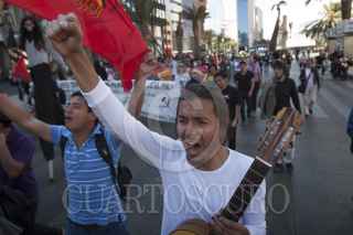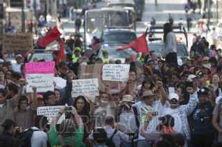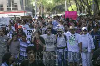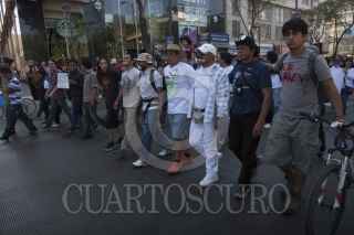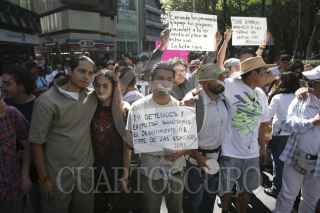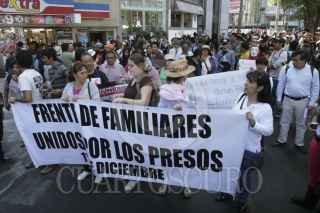MÉXICO, D.F., 30DICIEMBRE2012.- Los 14 jóvenes liberados el pasado jueves del Reclusorio Norte, acusados de actos vándalicos por las manifestaciones en contra de la Toma de Protesta de Enrique Peña Nieto como presidente de México el pasado 1 de diciembre, marcharon junto con familiares y compañeros de sus organizaciones para exigir al goibierno del D.F. se eliminen las acusaciones que se les imputan, ya que salieron bajo fianza y tienen que firmar cada semana ante las autoridades penitenciarias. FOTO: JUAN PABLO ZAMORA /CUARTOSCURO.COM