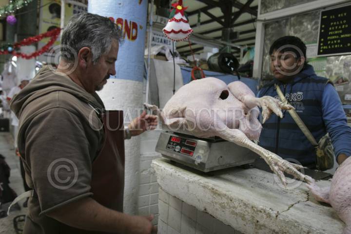 MÉXICO, D.F., 30DICIEMBRE2012.- Locatarios del mercado de San Juan muestran los productos que las personas más compran para hacer la cena de Año Nuevo. Los productos van desde el bacalao, mariscos, lechones, langosta, cabrito, hasta jabalí y venado, sin olvidar las uvas y el pavo. FOTO: JUAN PABLO ZAMORA /CUARTOSCURO.COM