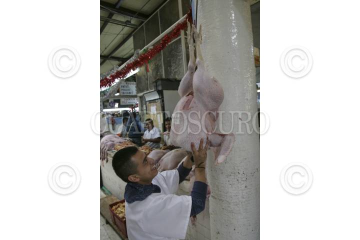 MÉXICO, D.F., 30DICIEMBRE2012.- Locatarios del mercado de San Juan muestran los productos que las personas más compran para hacer la cena de Año Nuevo. Los productos van desde el bacalao, mariscos, lechones, langosta, cabrito, hasta jabalí y venado, sin olvidar las uvas y el pavo. FOTO: JUAN PABLO ZAMORA /CUARTOSCURO.COM