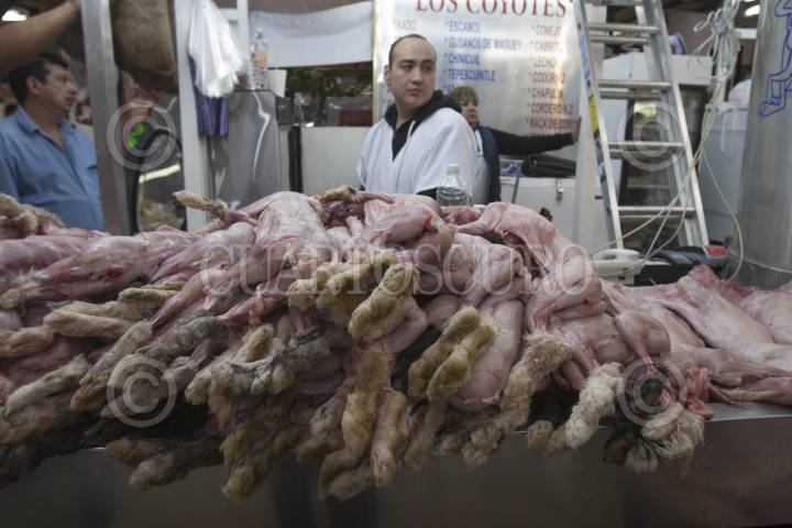 MÉXICO, D.F., 30DICIEMBRE2012.- Locatarios del mercado de San Juan muestran los productos que las personas más compran para hacer la cena de Año Nuevo. Los productos van desde el bacalao, mariscos, lechones, langosta, cabrito, hasta jabalí y venado, sin olvidar las uvas y el pavo. FOTO: JUAN PABLO ZAMORA /CUARTOSCURO.COM
