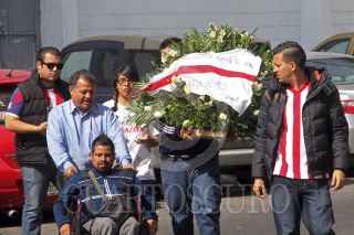 GUADALAJARA, JALISCO, 30DICIEMBRE2012.- Muesras de dolor expresaron los seguidores del "Rebaño Sagrado" por la muerte de Salvador Reyes Monteón, uno de los más grandes ídolos de Chivas de Guadalajara quien falleció el pasado sábado a los 76 años víctima de cáncer de colon. El máximo goleador de chivas en juego de liguillas con 122 anotaciones fue velado hoy en esta ciudad donde acudieron integrantes del "campeonisimo" mote que recibio a mediados de los 50s al conseguir 7 títulos de liga. FOTO: FERNANDO CARRANZA GARCÍA /CUARTOSCURO.COM