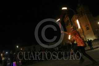 OAXACA, OAXACA, 31DICIEMBRE2012.- Jóvenes acróbatas hacen malabares con fuego en el centro histórico de la ciudad en busca de unas monedas. FOTO: ARTURO PÉREZ ALFONSO /CUARTOSCURO.COM