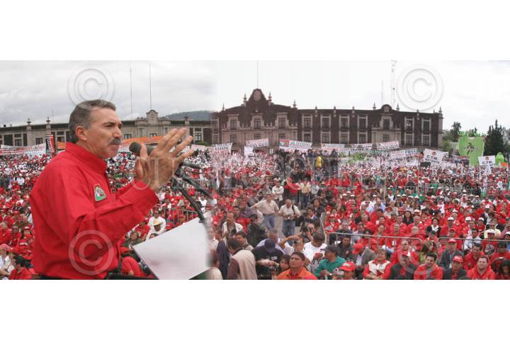 TOLUCA, EDO. MEX. 25JUNIO2005.- Jorge Emilio Gonález Martínez, presidente nacional del PVEM, Miguel Osorio Chong, gobernador de Hidalgo, Fidel Herrera, gobernador de Veracruz, Roberto Madrazo, presidente nacional del PRI, Enrique Peña Nieto, candidato a la gubernatura del estado, y Arturo Montiel, gobernador del Estado de México estuvieron presentes en el cierre de campaña del priísta Enrique Peña en la plaza central de la entidad. FOTO: Juan Flores/CUARTOSCURO.COM